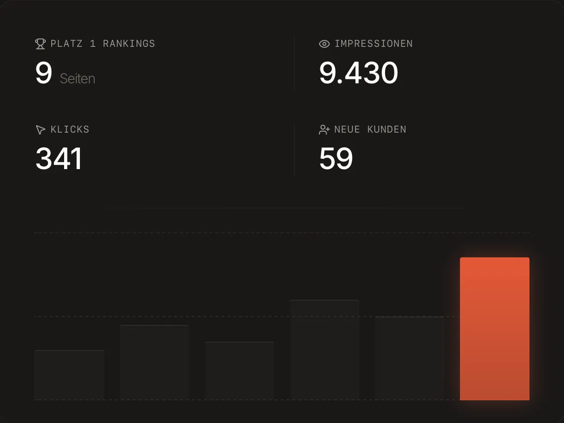 Mit gezielter SEO-Optimierung bringen wir Ihre Website auf die erste Seite bei Google. Mehr Sichtbarkeit auf Google bedeutet mehr Anfragen und Kunden.