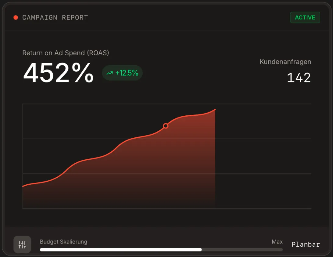 Das Budget hängt von Ihrer Branche, der Konkurrenz und Ihren Zielen ab. Wir besprechen im Kennenlern-Call, welches Budget für planbare Ergebnisse in Ihrem Fall sinnvoll ist. Prinzipiell macht ein Budget unter 20-30€ pro Tag jedoch keinen Sinn.